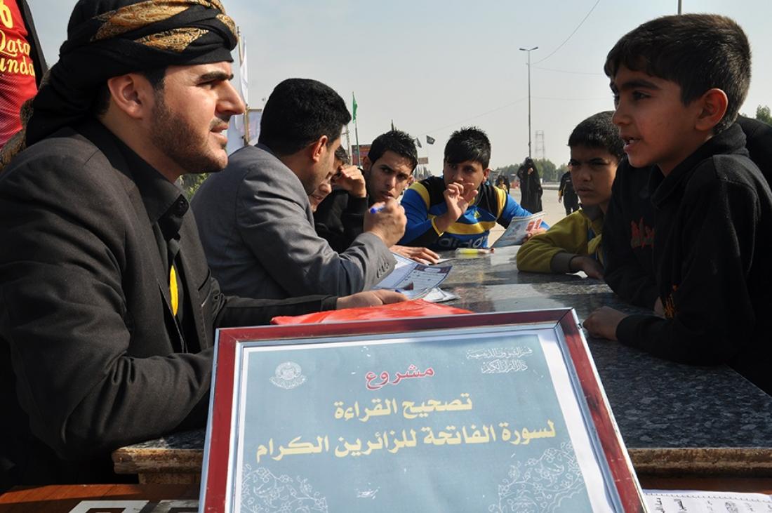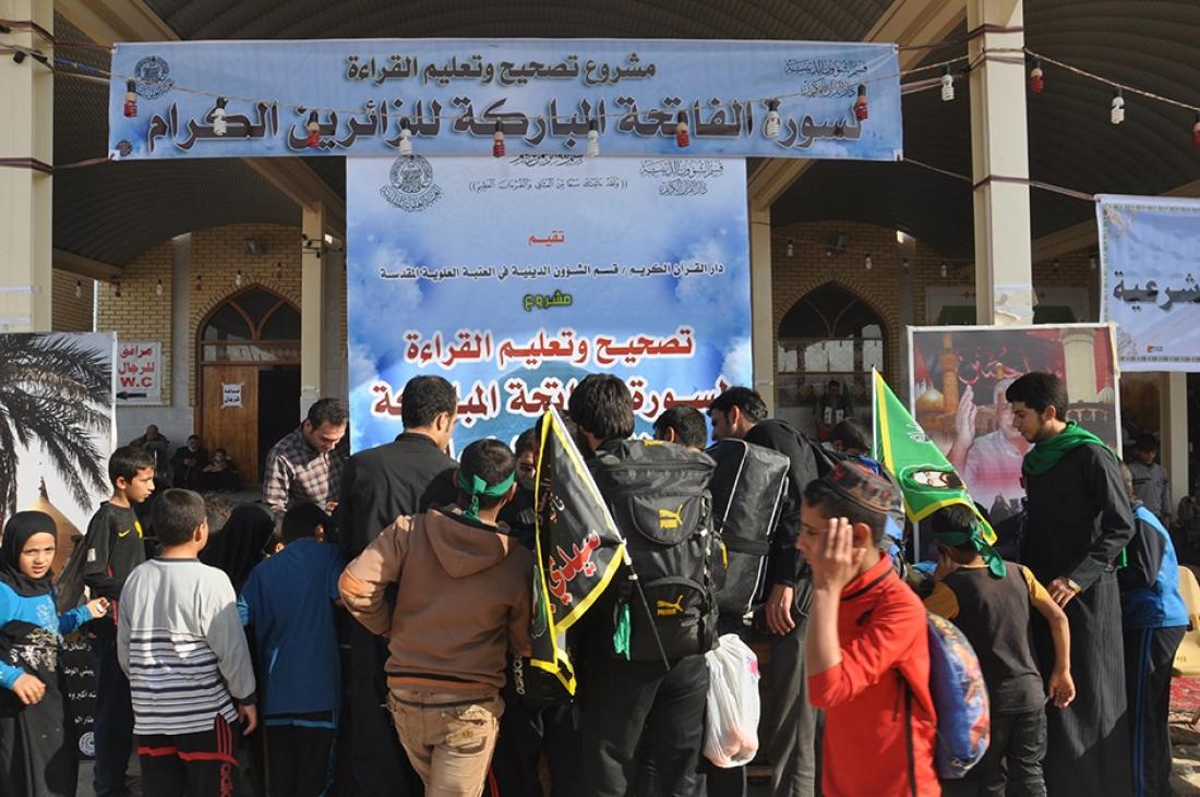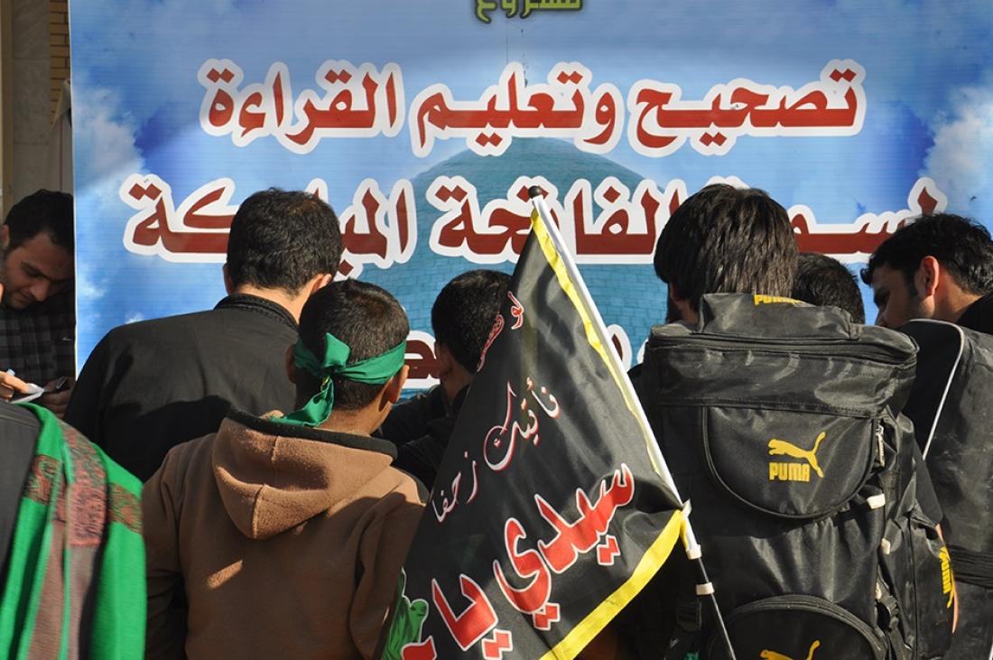 لليوم الرابع على التوالي :: إستمرار مشروع تصحيح القراءة لسورة الفاتحة للزائرين خلال الزيارة الأربعينية 1436 هــ