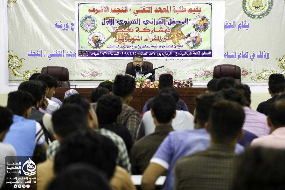 المحفل القرآني السنوي الأول الذي اقامه طلبة المعهد التقني في النجف الاشرف بمشاركة وفد دار القرآن الكريم في العتبة العلوية المقدسة