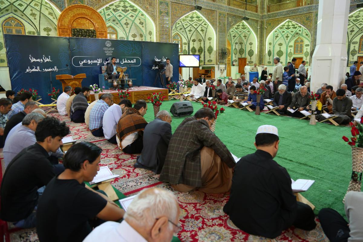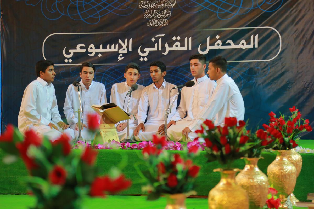 يقام المحفل الإسبوعي في كل جمعة بعد صلاة المغرب التي تتنوع فيها الفقرات القرآنية من قبيل استضافة أبرز القراء والحفاظ والموهوبين فضلاً عن فقرات أخرى كالتفسير والموشحات الدينية وغيرها.