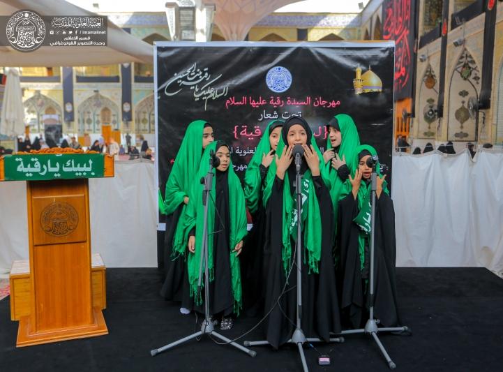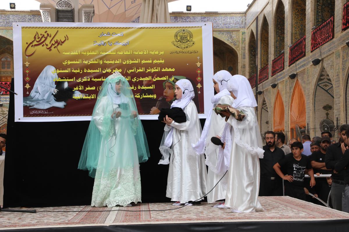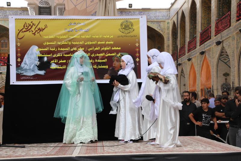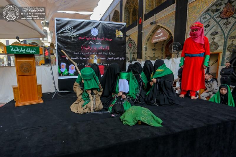 كل سنة يقام مهرجان السيدة رقية (عليه السلام) في الصحن الحيدري بمناسبة شهادة السيدة رقية عليه السلام، بمشاركة المدارس الحكومية من انحاء النجف، وبحضور طالبات الابتدائية من الصف الثالث والرابع، ويصل عدد الطالبات الى (1000) طالبة، ومن ثم انطلاق مسيرة للطالبات حول صحن الإمام علي عليه السلام، تنطلق من باب الساعة و تنتهي إلى موقف السيارات قرب المضيف .