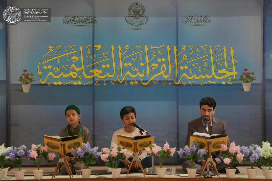 الجلسة القرآنية التعليمية، والتي تقام في باحة الصحن العلوي المطهر أيام: (السبت والأحد والإثنين والأربعاء)