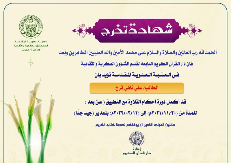 التعليم والتحفيظ ودار الشهداء للقرآن الكريم والردة الحسينية