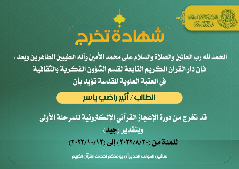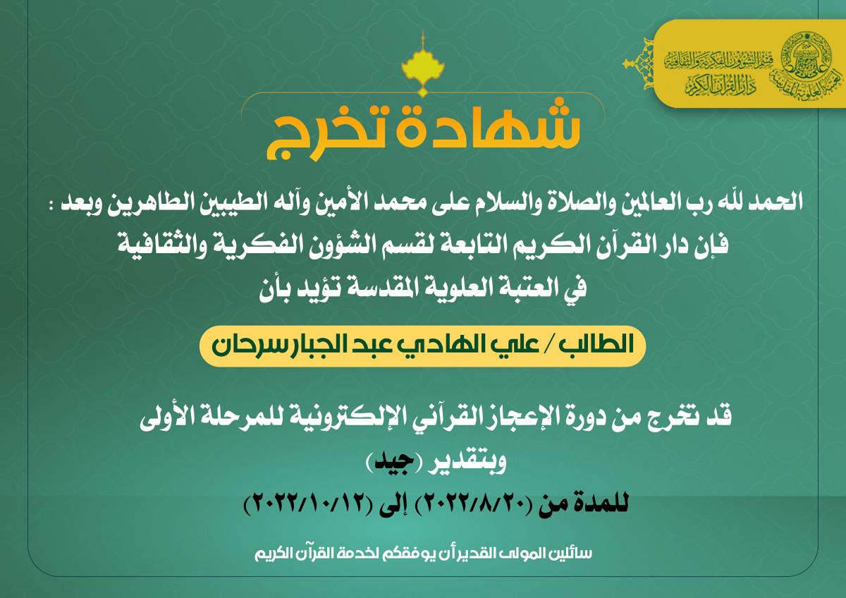 التعليم والتحفيظ ودار الشهداء للقرآن الكريم والردة الحسينية