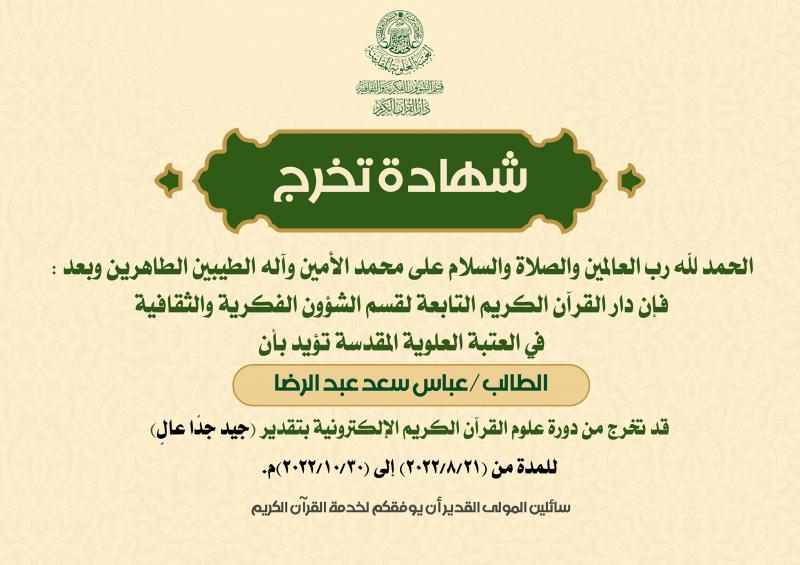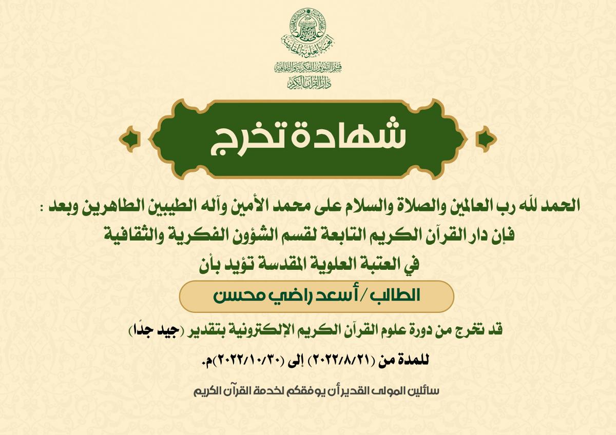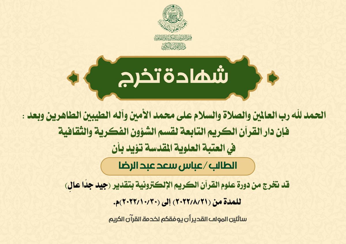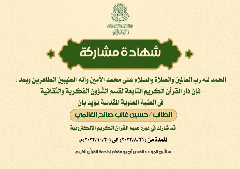 التعليم والتحفيظ ودار الشهداء للقرآن الكريم والردة الحسينية