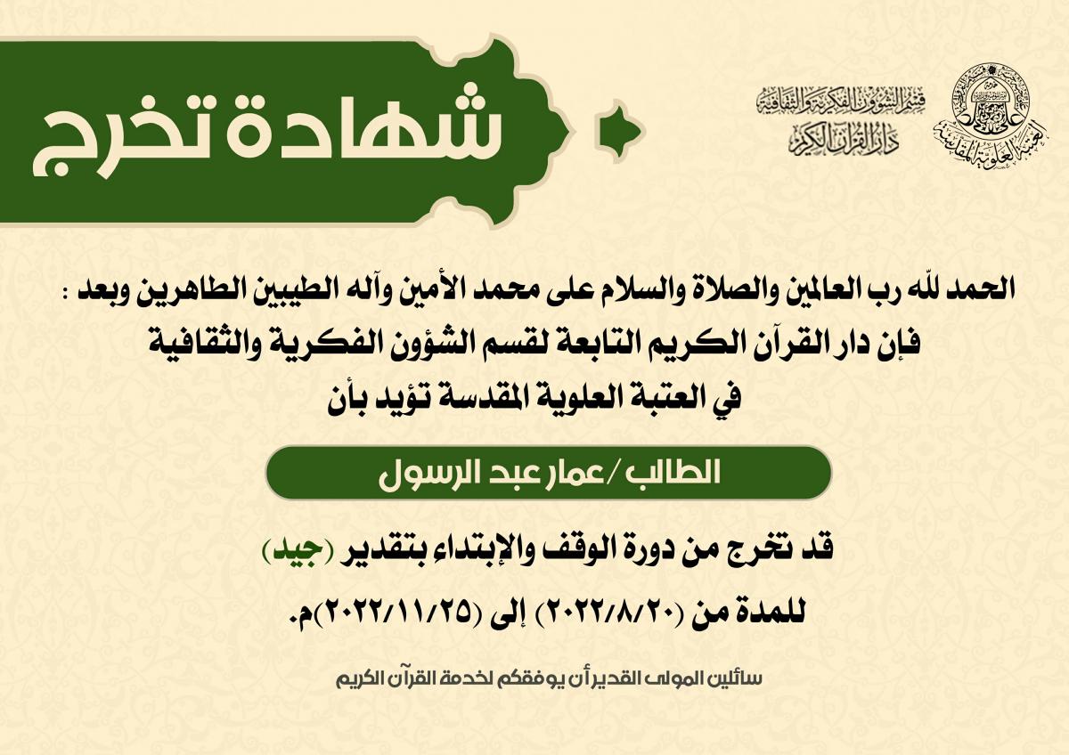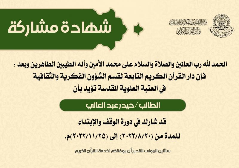 التعليم والتحفيظ ودار الشهداء للقرآن الكريم والردة الحسينية