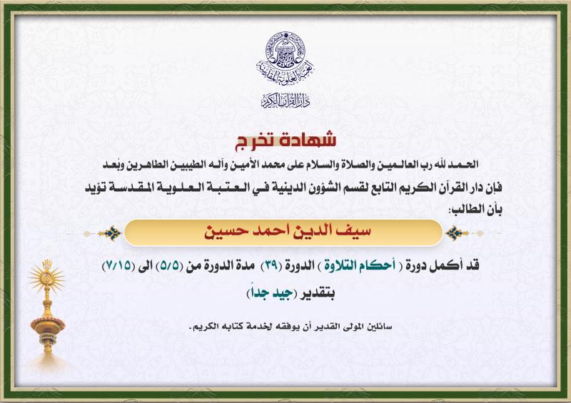 التعليم والتحفيظ ودار الشهداء للقرآن الكريم والردة الحسينية