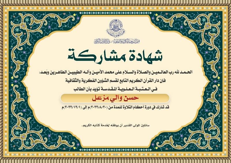 التعليم والتحفيظ ودار الشهداء للقرآن الكريم والردة الحسينية