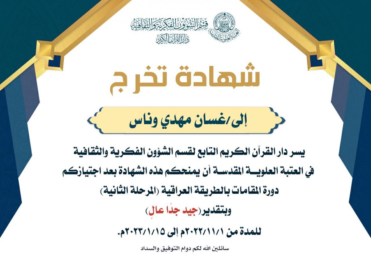 التعليم والتحفيظ ودار الشهداء للقرآن الكريم والردة الحسينية