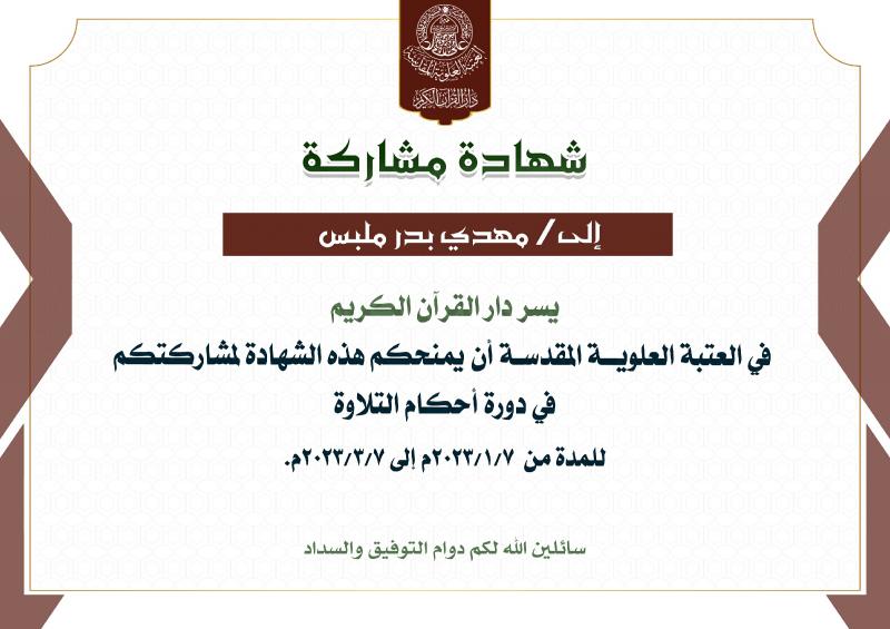 التعليم والتحفيظ ودار الشهداء للقرآن الكريم والردة الحسينية