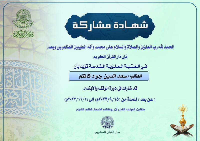التعليم والتحفيظ ودار الشهداء للقرآن الكريم والردة الحسينية