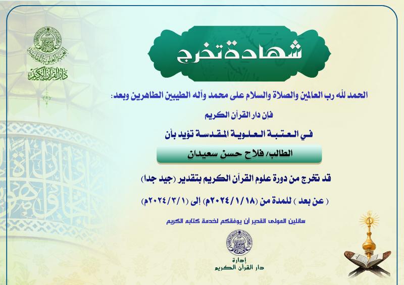التعليم والتحفيظ ودار الشهداء للقرآن الكريم والردة الحسينية