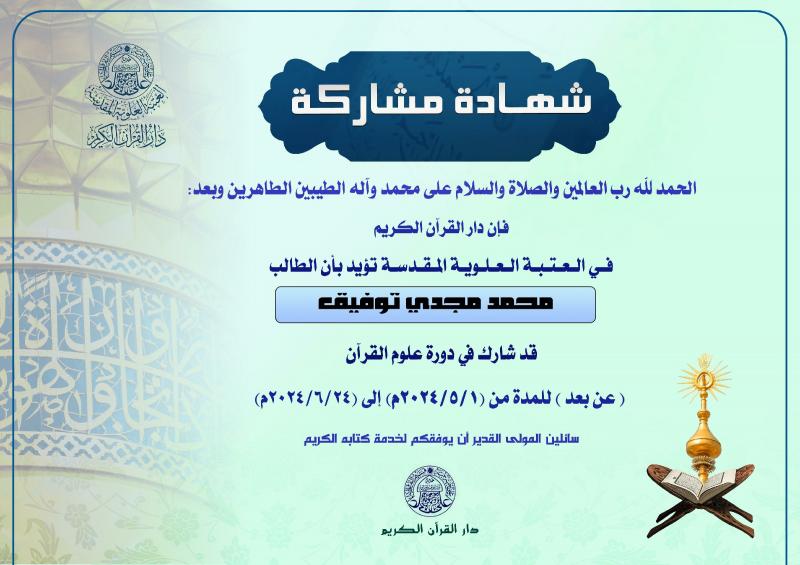 التعليم والتحفيظ ودار الشهداء للقرآن الكريم والردة الحسينية