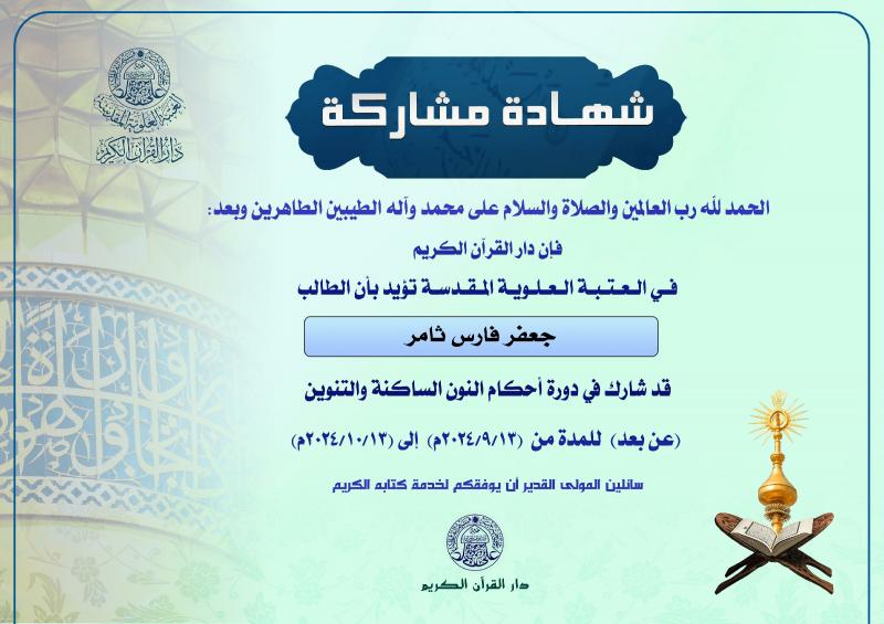 التعليم والتحفيظ ودار الشهداء للقرآن الكريم والردة الحسينية
