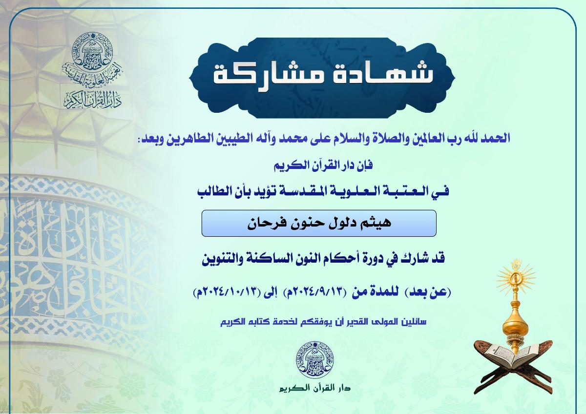 التعليم والتحفيظ ودار الشهداء للقرآن الكريم والردة الحسينية